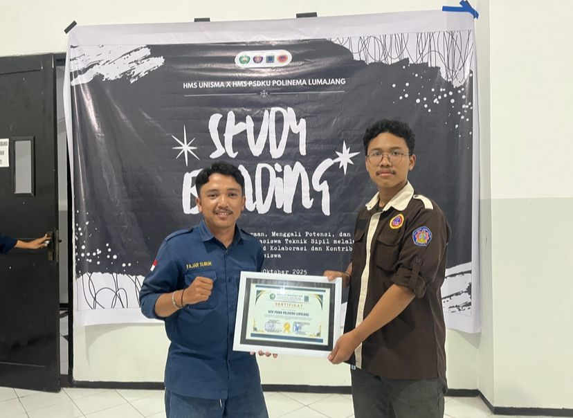 Pada hari Sabtu, tanggal Oktober 2025, telah dilaksanakan kegiatan Studi Banding antara Himpunan Mahasiswa Sipil (HMS) Universitas Islam Malang (UNISMA) dengan Himpunan Mahasiswa Sipil (HMS) PSDKU Politeknik Negeri Malang (POLINEMA) Lumajang. Kegiatan ini merupakan salah satu agenda organisasi yang bertujuan untuk mempererat hubungan kelembagaan antarhimpunan mahasiswa, sekaligus sebagai sarana pertukaran wawasan, pengalaman, serta penguatan kapasitas organisasi kemahasiswaan.